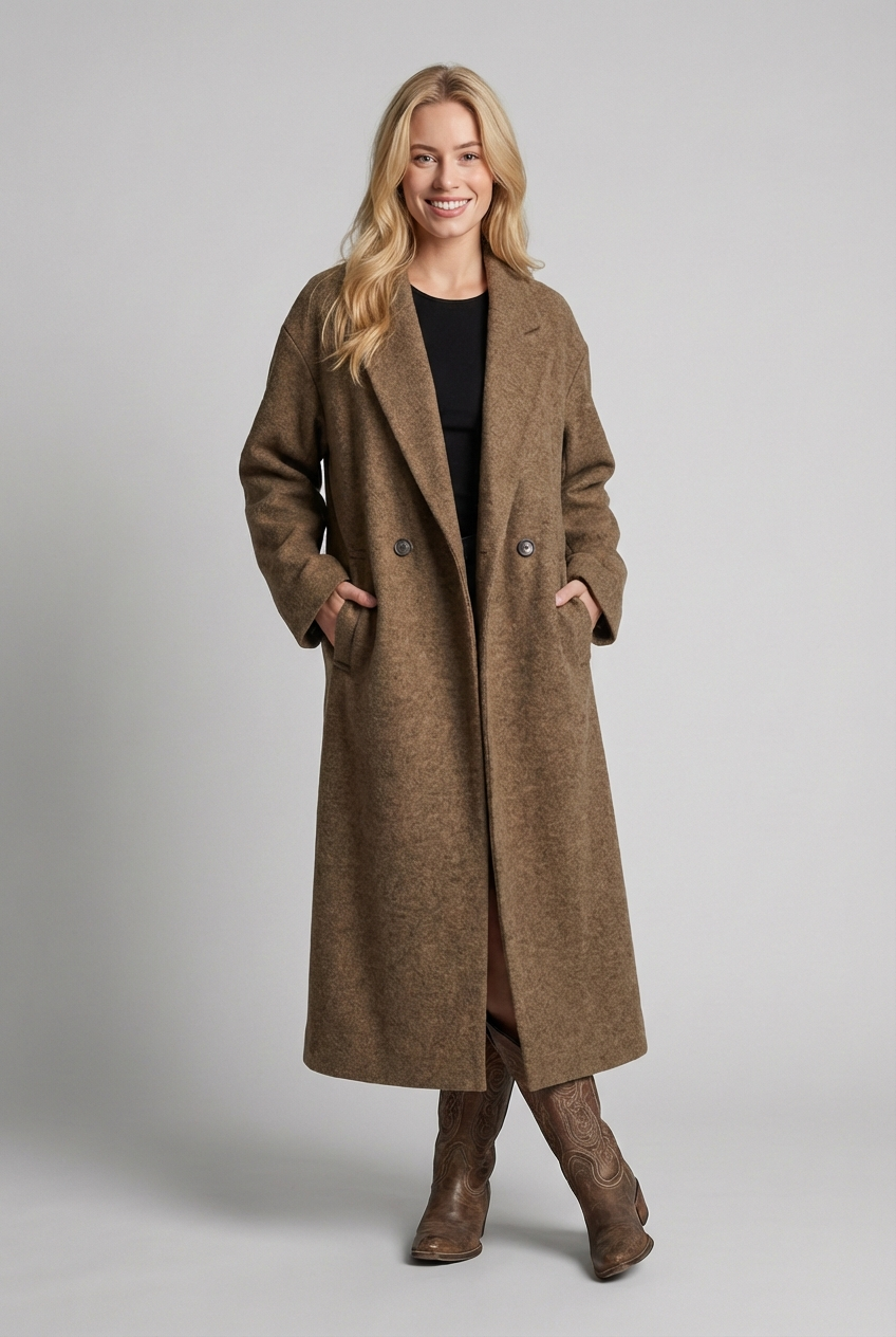 Chloe | Eleganten strukturiran plašč dolžine do tal