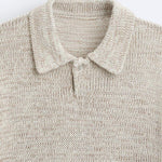 Obogatite svojo garderobo z našo Staro denar gumbasto pleteno polo majico, simbolom brezčasne sofisticiranosti in elegance. Ta pletena polo majica, narejena iz preje iz bombaža, se ponaša z gumbastim zapenjanjem spredaj, kratkimi rokavi in rebrastimi detajli ob robovih za izpopolnjen pridih.
