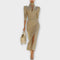 Sofisticirana midi obleka z elegantnim visokim razporkom