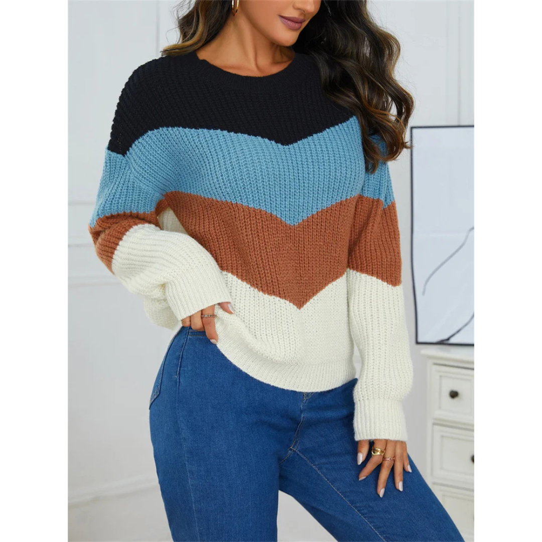 Clémence™ | Pulover z Ovratnikom in Kontrastnimi Črtami