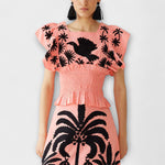 Razširite svojo garderobo s Tropical Elegance majico brez rokavov, ki navdušuje z osupljivim dizajnom palm in eksotičnih ptic.