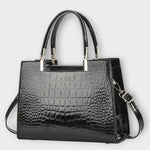 Svetleča kroko zasnova dodaja eleganco in dinamiko vsakemu videzu.