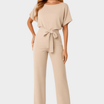 Pokažite svojo brezčasno eleganco s tem minimalističnim kombinezonom do tal, ki izžareva profesionalnost in sodobno estetiko. Mehko strukturiran kroj in integriran pas poudarita vaš pas, medtem ko nevtralna barva ponuja neskončne možnosti kombiniranja.