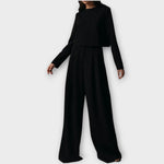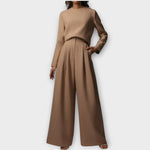 Minimalistična dvodelna obleka združuje rafinirano krojenje z breznapornim sofisticiranim stilom. Oblikovana za moderno žensko, ponuja elegantno silhueto, ki je popolna za profesionalna okolja in večerne priložnosti.