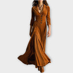 Retro žametna maksi obleka z gumbi
