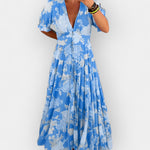 Odkrijte vrhunsko poletno eleganco s tem romantičnim in zračnim kosom. Živahen cvetlični vzorec bo pritegnil pozornost ob vsaki priložnosti.