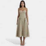 Retro Midi Obleka s Tanjšimi Naramnicami