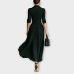Elegantna plisirana obleka z ovratnikom in pasom, dolgi rokavi" Rewritten: "Elegantna dolga plisirana obleka z ovratnikom in pasom, dolgi rokavi