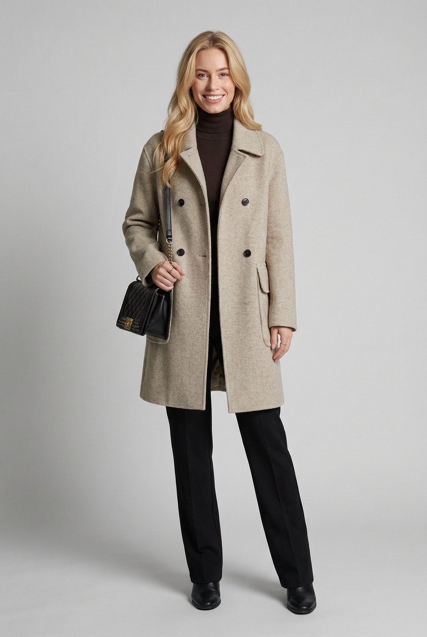 Preoblikujte zimsko oblačenje z brezčasnim privlačnostjo našega klasičnega volnenega plašča z dvojno zapenjanjem. Narejen iz mešanice vrhunske volne, ta dolga silhueta združuje izpopolnjeno strukturo s sodobno funkcionalnostjo. Popoln za prekrivanje vaših vsakodnevnih ali posebnih oblačil, je vaš referenčni plašč za rafinirano toploto in diskretno eleganco.